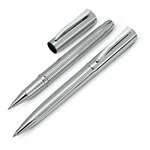 Metal pen set with ball pen and roller ball in gift box. Black ink.