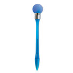 Ball pen with light bulb. Hit the plastic ball to illuminate. 3 cell batteries included. Black ink.