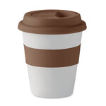 Single wall tumbler in 100% PLA corn with silicone lid and grip. Capacity: 350 ml. PLA (poly-lactic acid) is an 100% bio-based alternative for conventional plastics. It is made from fermented plant starch which is free of toxics and carbon neutral.
