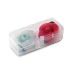 Set of 2 red and white additional lights for bicycle and outdoor use. Delivered in frosty white PP box. 2 button cells included.