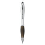 Twist action ball pen in ABS with stylus soft grip and matching tip. Blue ink