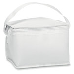 Cooler bag for 6 cans in 210 polyester. With non woven white trimmings. 80gr/m². Isolation material: foam laminated with aluminium foil. Capacity 3L.