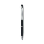 Twist action ball pen in aluminium with stylus and matching coloured body barrel and top. Blue ink.