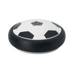 Hover ball in PP with foam edging for protection. It is operated with 4 AA batteries and floats by air on any flat surfaces. It has a changing LED light. Batteries not included.
