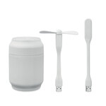 3 in 1 humidifier in can shape. It has a mini fan and a night light and it has 6 colour changing mood.