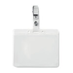 PVC badge holder with metal clip.