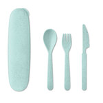 Re-usable cutlery set made of 50% wheat straw and 50% PP. Includes knife, fork and spoon in case.