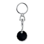 Metal keyring trolley pound (GBP) token. With imitation enamel coating on the front side. Token size Ø23,43x2,8 mm thickness.
