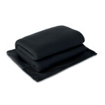 Fleece travel blanket 150 gr/m² (100x155cm ) in 190T polyester pouch with mesh detail.