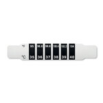 Fever indicator made of PET. It shows temperature in both Celsius and Fahrenheit. One time use only. 18mm thickness.
