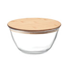 Salad/storage box in borosilicate glass with bamboo lid and silicone band. Capacity: 1200 ml. Bamboo is a natural product, there may be slight variations in colour and size per item, which can affect the final decoration outcome.
