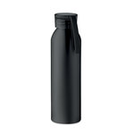 Single wall aluminium bottle with PS lid and silicone hanger. Capacity: 600 ml. Leak free.