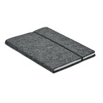 A5 notebook with RPET felt cover. 160 recycled paper lined pages (80 sheets / 70 gr/m²). Elasticated pen loop.