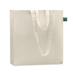 Shopping bag with long handles and gusset made of Fairtrade cotton. 180 gr/m².