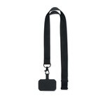 Lanyard in polyester with phone holder and safety buckle. 2 cm.