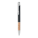 Push button pen in aluminium with cork grip. Blue ink.
