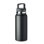 Double wall stainless steel vacuum insulated bottle with hook hanger on lid. Capacity: 970 ml.