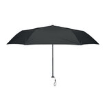 Mini 3 fold ultra light (100gr.) 19 inch manual open windproof umbrella in 30D pongee polyester with black carbon fibre shaft. Black carbon fibre ribs and plastic tips. Manual closure. Presented in pouch.