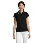 SOL'S PASADENA women polo shirt 200g. Modern cut & style. Wide colours range. Designed for any type of market. Rib 1x1 collar and cuffs. Reinforcing tape on neck. Short sleeves. Contrasting stripes on collar and cuffs. Tone on tone 3 button placket. Fitted cut. Cut and sewn. Side slits. Spare button on the inside seam. Fabric details: 100% Ringspun cotton. OEKO-TEX®. Only Sold with Print.