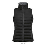 SOL'S WAVE Women's Bodywarmer/vest in lightweight material. This is the sleeveless version of the popular Ride jacket but offers greater freedom of movement. Can also be used as an extra layer under a jacket. Wind and water repellent material, 2 pockets with stylish zippers and colour matched lining, high collar, stylish fit, Tone-on-tone reinforcement at the hem. Fabric details: 100% nylon, lini Only sold with print
